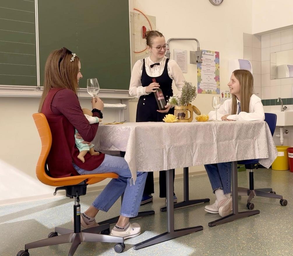 Ob Freunde in der Imbissbude, wählerisches Ehepaar im luxuriösen 5-Sterne-Lokal oder chaotische Familie, die die Ruhe aller anderen Restaurantbesucher stören – die Szenen waren ebenso kreativ wie witzig. Die Schülerinnen und Schüler schlüpften gerne in andere Rollen, wobei auch das ein oder andere unerwartete Bühnentalent zum Vorschein kam. Neben dem Spaß stand dabei auch das Lernen im Vordergrund: Die Jugendlichen erweiterten spielerisch ihren Wortschatz, übten typische Redewendungen im Restaurant und stärkten ihr Selbstvertrauen beim freien Sprechen.